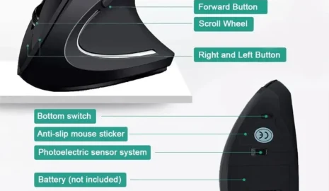 Vertical Mouse Ergonomic 2.4GHz Wireless Optical Mice 3 Adjustable DPI 800/1200/1600 6 Buttons for Laptop PC Computer Desktop
