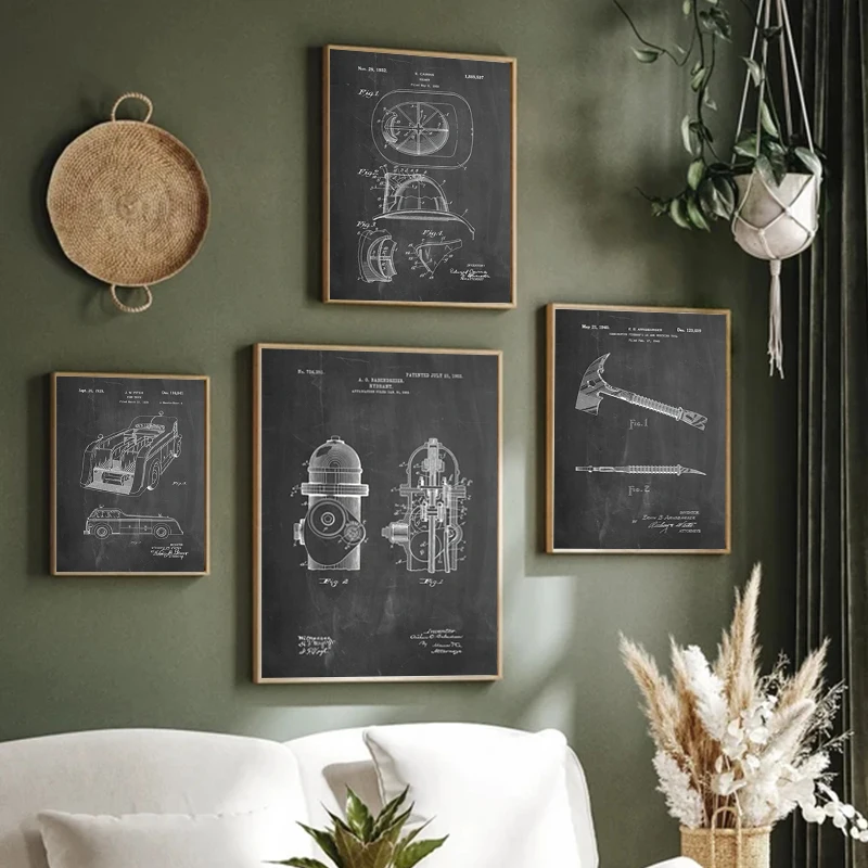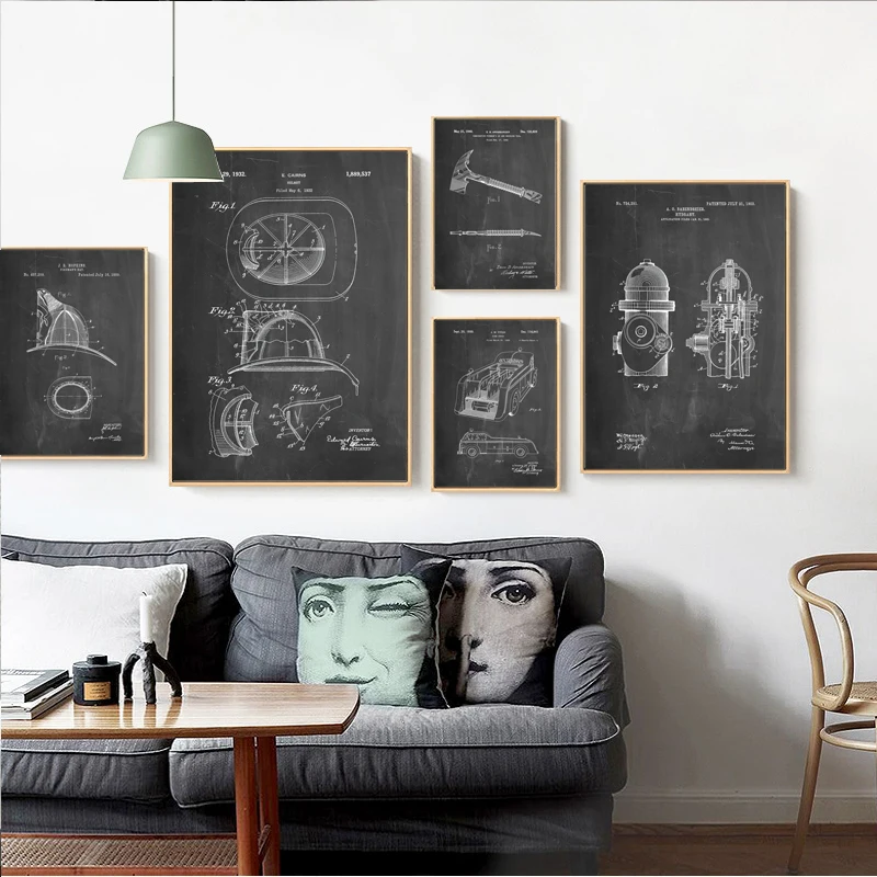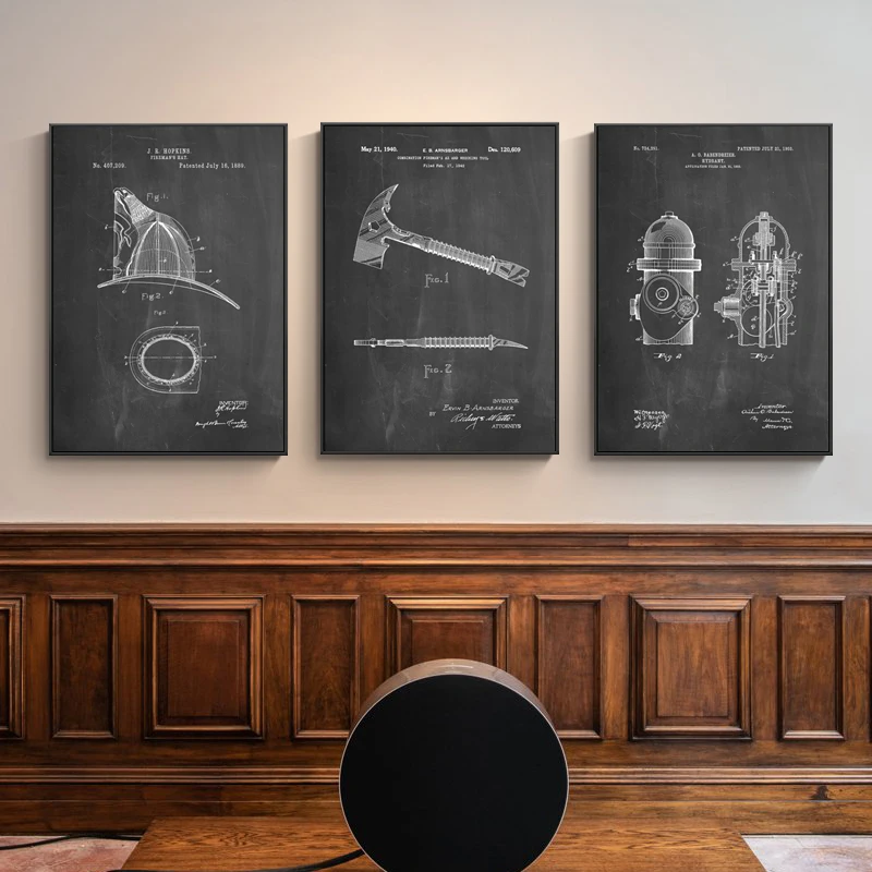Fire Truck Parts Abstract Lines Wall Decor Vintage Poster Art Industrial Style Retro Nostalgic Black White Picture Prints Canvas Painting